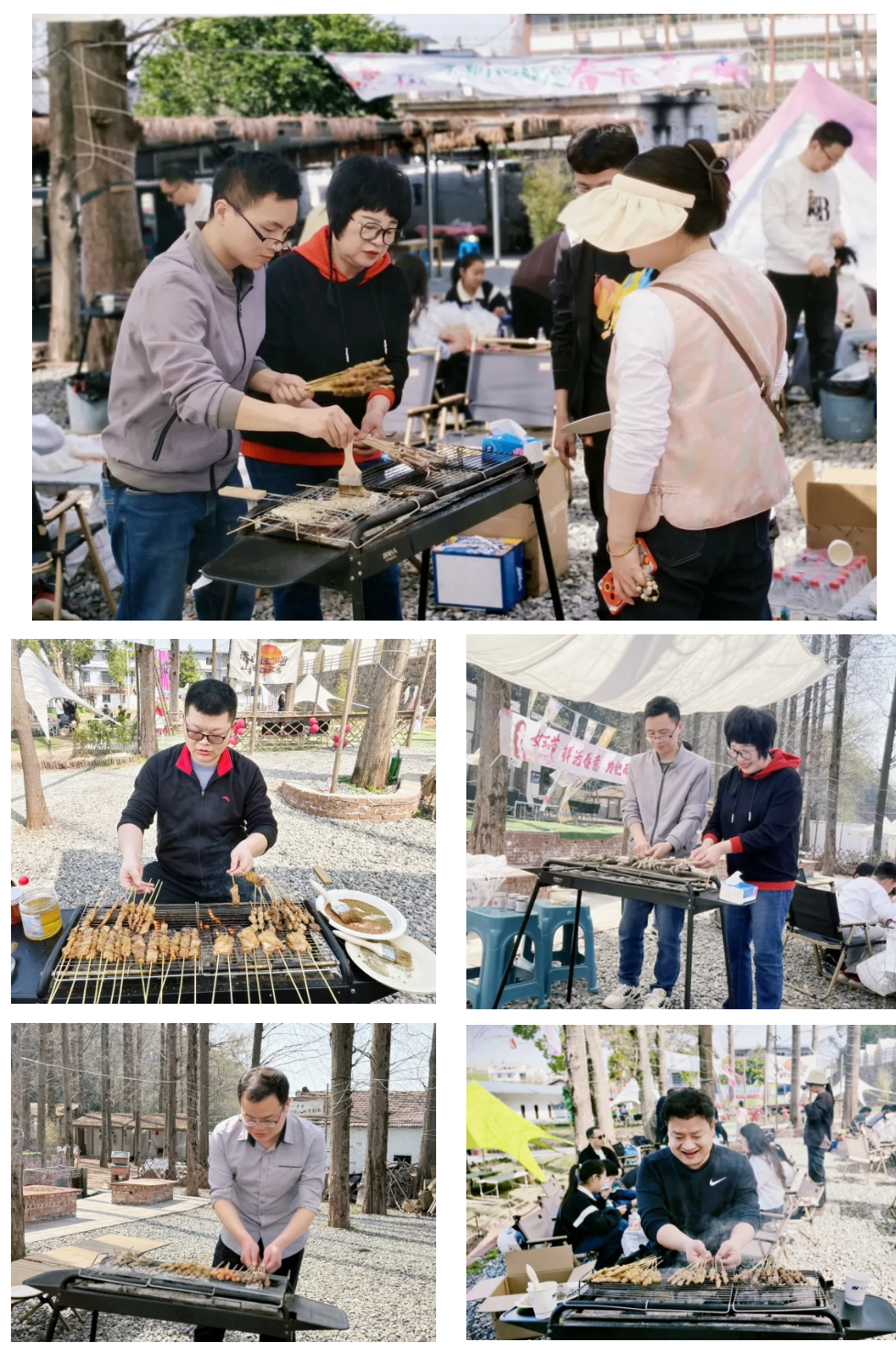 活动以自助烧烤拉开序幕,大家分成5个小组,迅速投入到热火朝天的准备工作中。有人负责看火,有人忙着分串,有人精心调料,分工明确,配合默契。炭火渐渐燃起,烤架上摆满了各式各样的食材,香气四溢,令人垂涎欲滴。烧烤现场热闹非凡,欢声笑语不断,大家一边翻动着烤串,一边分享着生活中的趣事,气氛轻松而愉快。